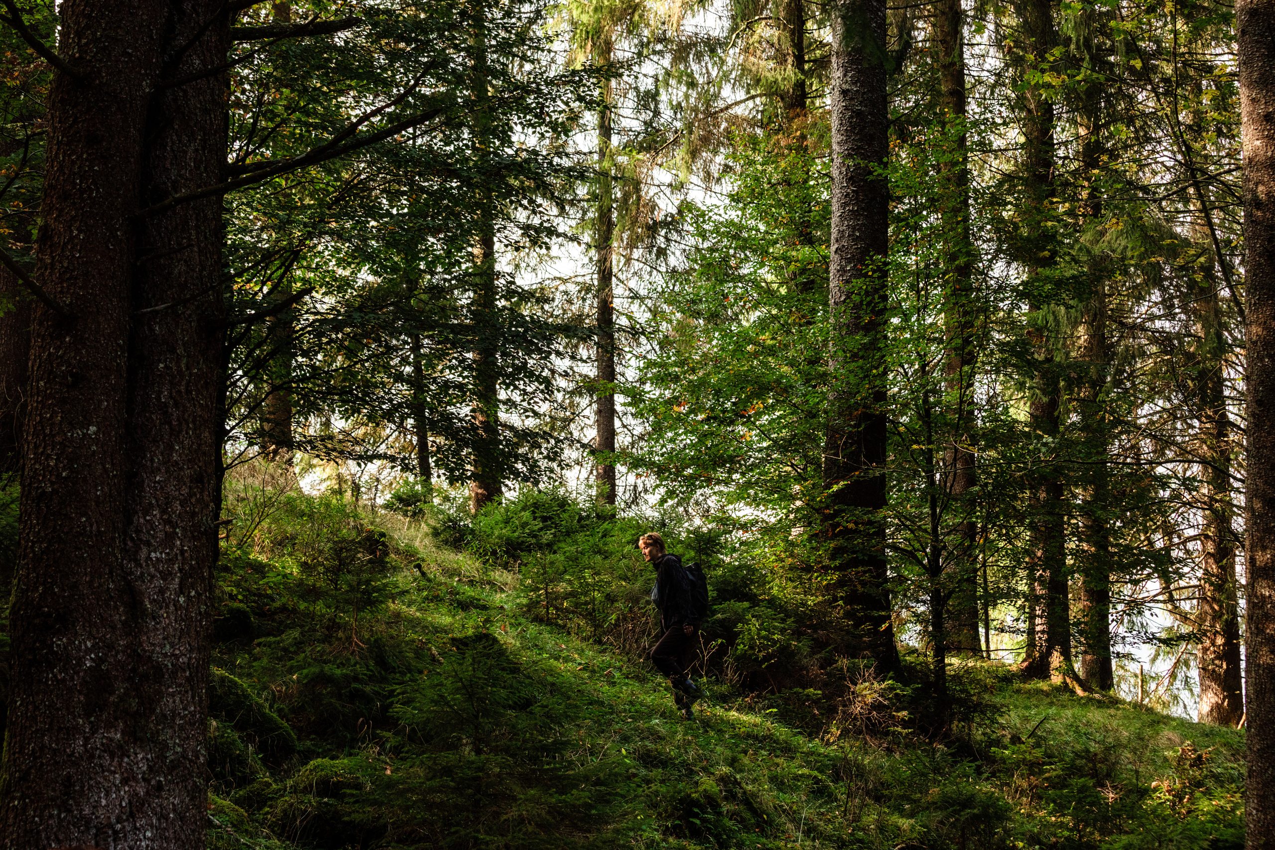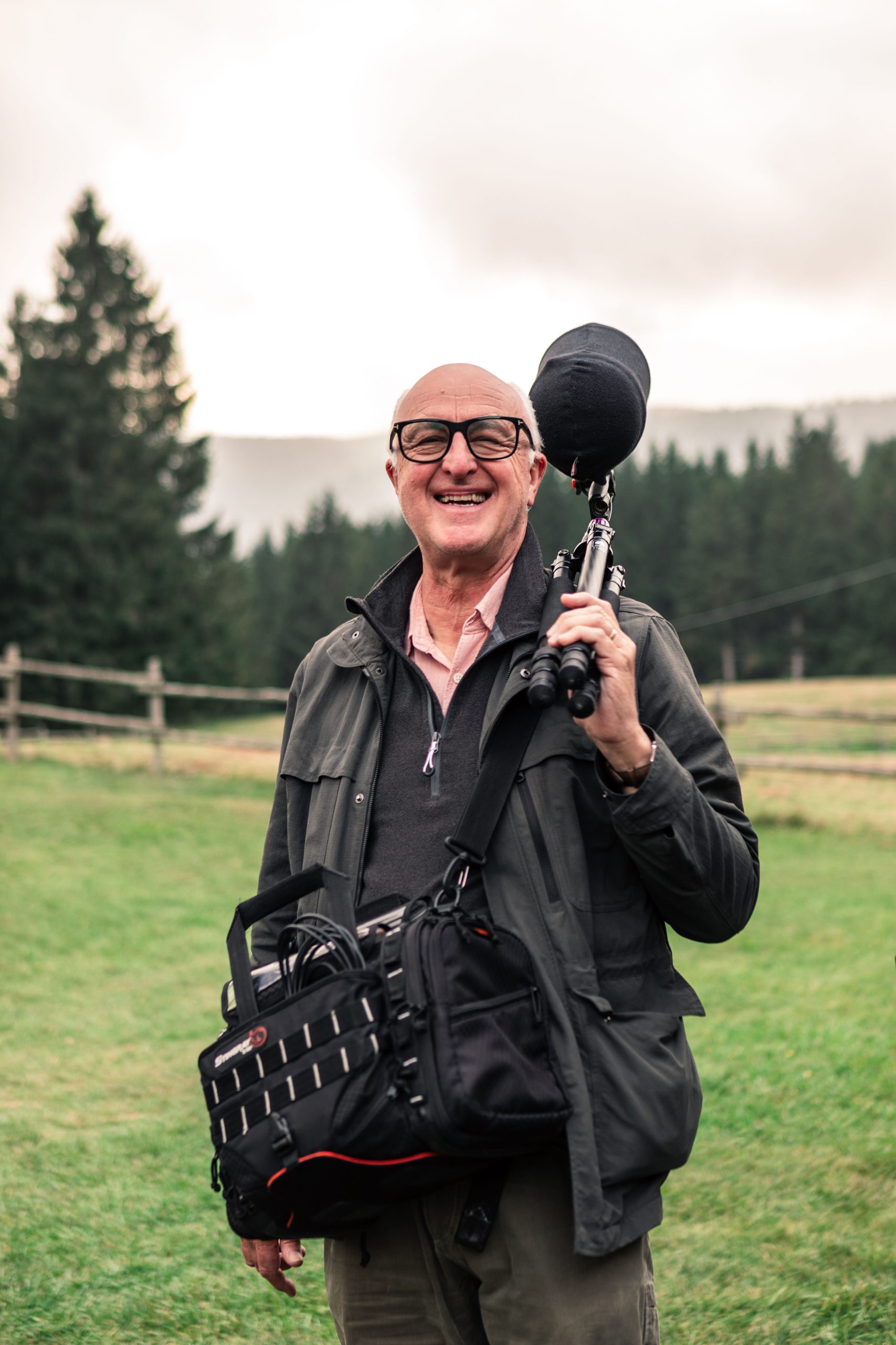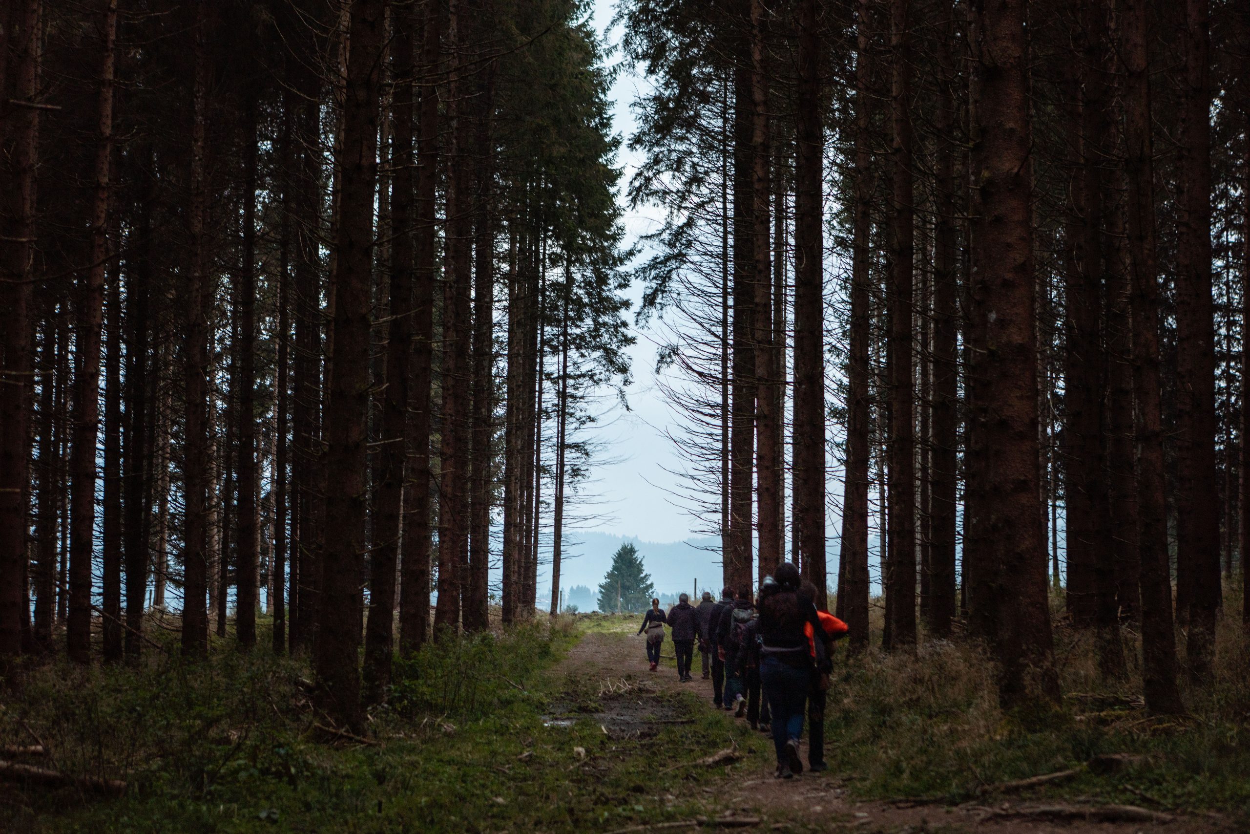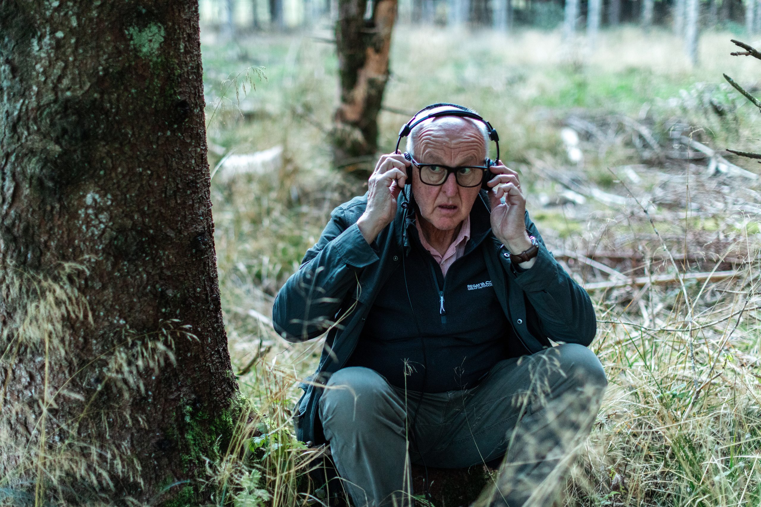 As Watson explains how to place camouflage for the equipment or when to use omnidirectional microphones instead of unidirectional ones, it becomes clear that the deer and their roaring are just a pretext: today fabricanti are here to learn about listening. Just a few steps inside the forest and the sounds change. The trampling, muffled by the underbrush, becomes lighter. The breaths deeper: pine resin can be inhaled. After a few minutes of walking, fabricanti come to a small glade. Looking northeast, the trees break off and the meadow ends in a steep wall. The acoustic is excellent. In this setting, even the dense webs of spiders seem part of the design of a large recording studio surrounded by greenery. Watson pauses.