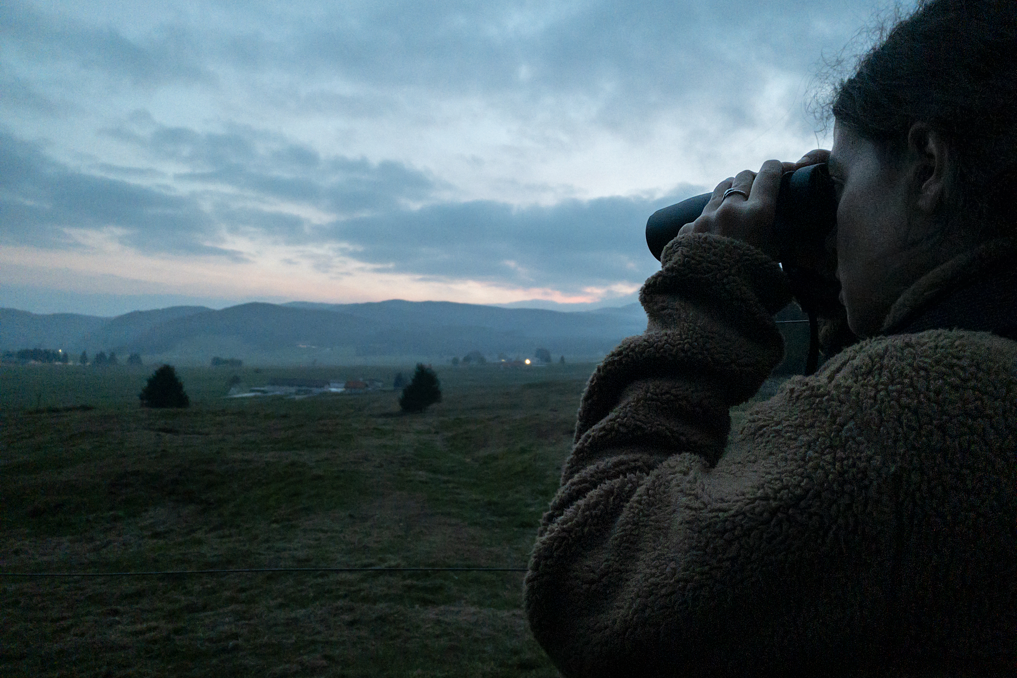 Finally, the binoculars frame a moving herd of specimens, with the male in the middle, a hundred meters away. Fabricanti follow the scene. They do not hear the noises directly, but they can imagine them: footsteps on the gravel, hooves clashing on a fence, mandibles grazing the grass in the meadow. A few minutes later, darkness finally surprises the valley, and those moans that were barely audible from the distance now become more intense in volume and frequency. The binoculars are now useless. The microphones installed by Watson, on the other hand, become essential for picking up the deer’s roaring and establishing their location.