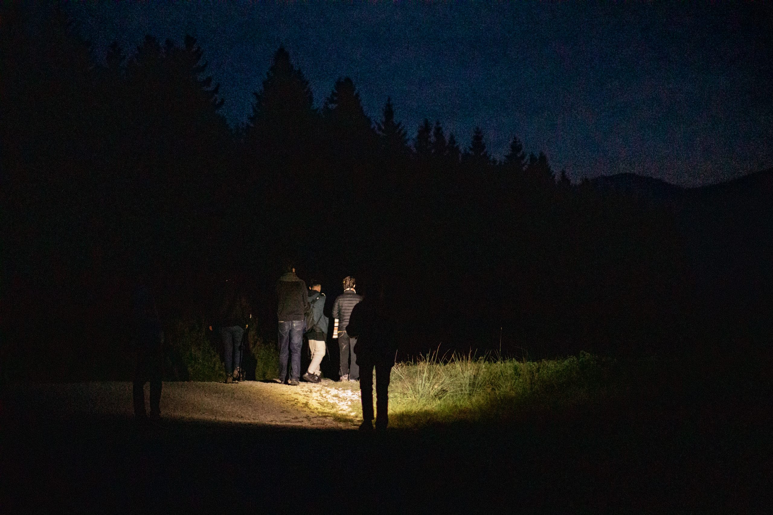 These are the details fabricanti record in their notebooks as two guides lead them inside the forest for sighting and listening. The deer are afraid of humans. That is why they wait until nightfall to go down to the valley to eat. Sitting and immobile, fabricanti hand binoculars to each other and scan the pastures at the edge of the forest. Then, they have to get up and change locations while making as little noise as possible. Every human passage generates a sonic impact on the environment and the animals that inhabit it.