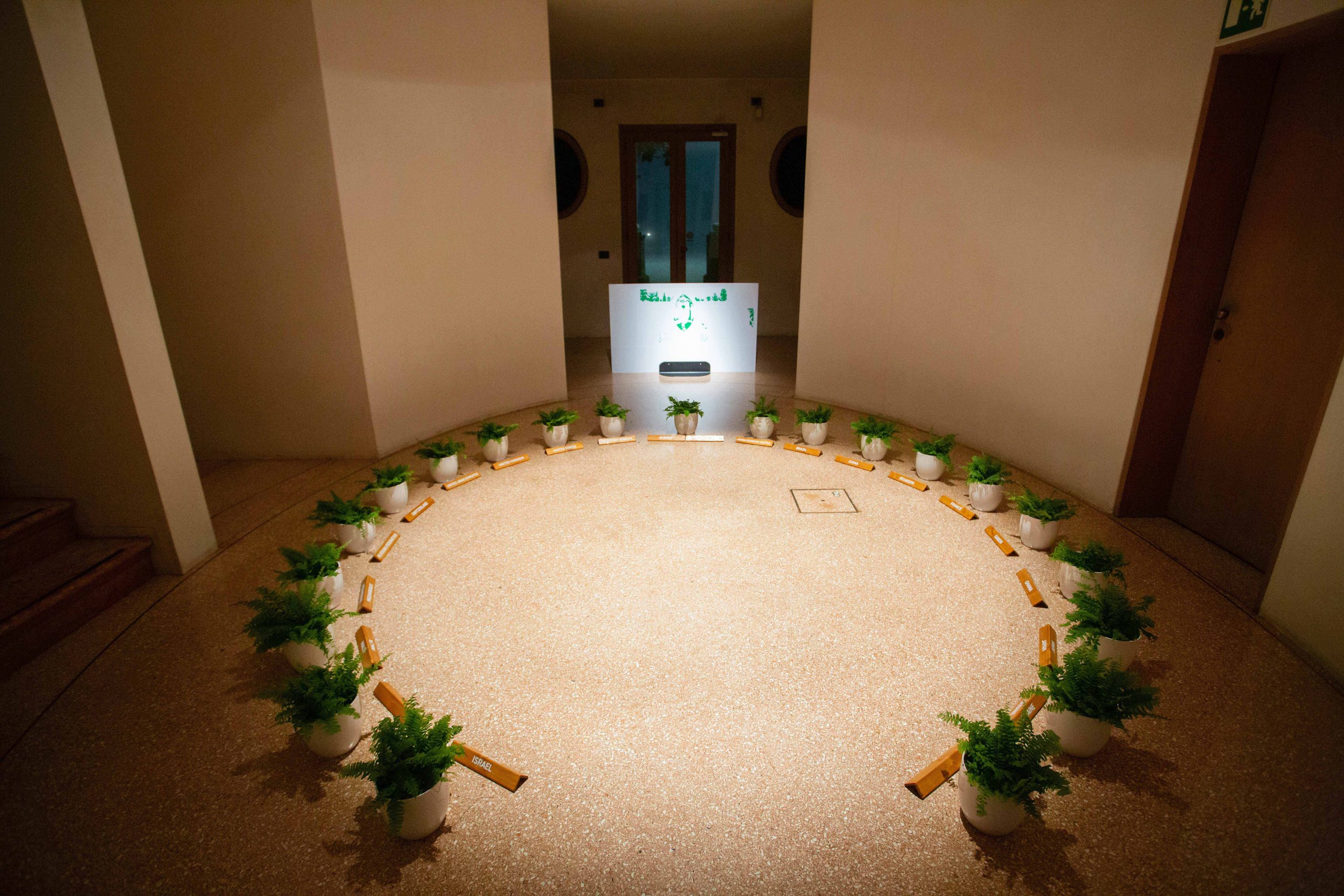 “Blooming in Embers” is a journey that testifies to the possibility of a rebirth of hope and light, while negotiating between forms of resistance based upon mutual giving and elemental forces of destruction and everlasting circularity.