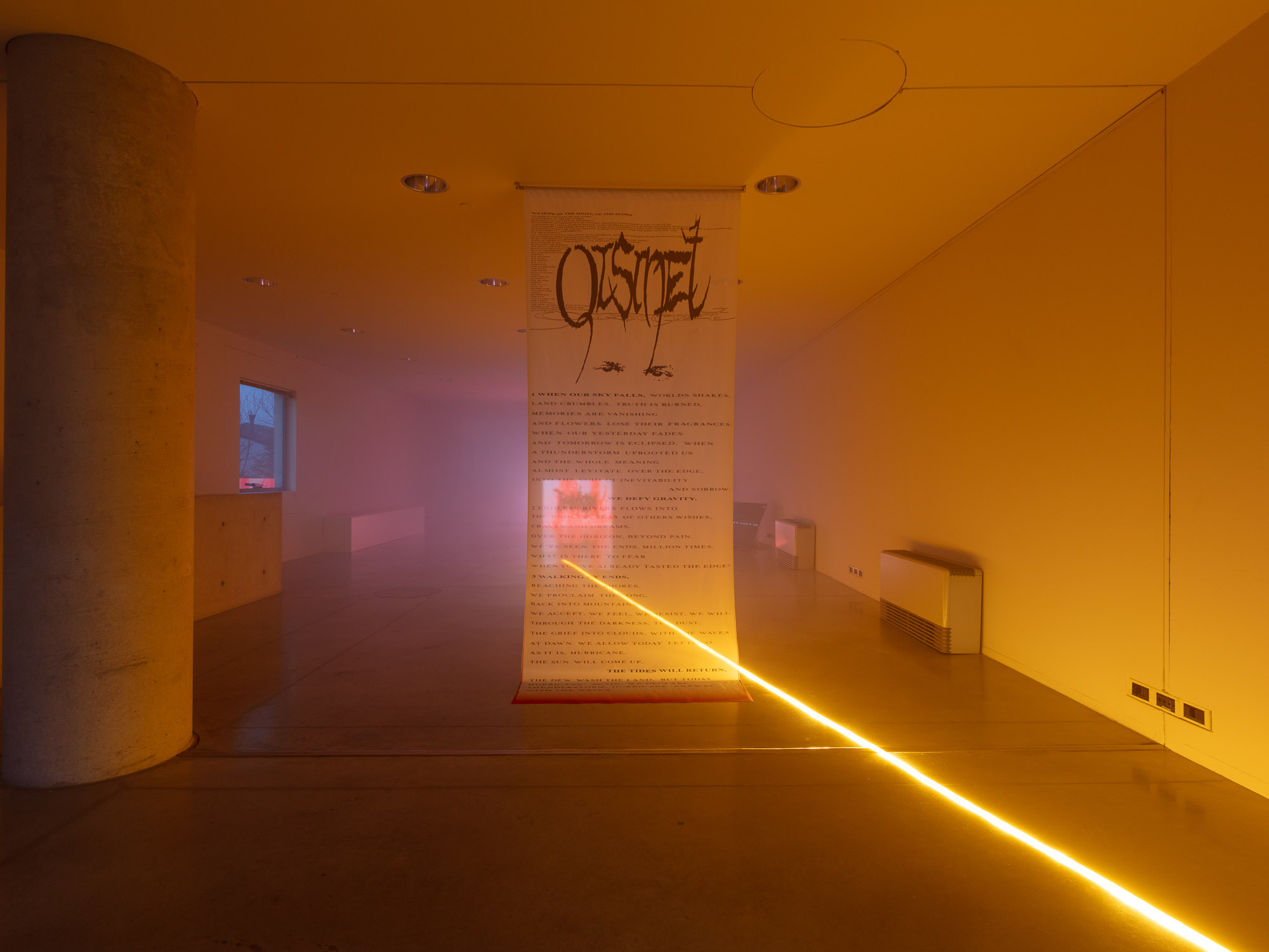 QISMET is a space of liberation-resonation with indigenous people of Crimea peninsula (QIRIM), that are destined to be a case of cause-and-effect layered settler colonialism. The sonic-visual experience invites to vibrate with a walk-through timeline of the distorted past across visual-sequences of metaphorical interpretations. A visual tracing of flawed logic and imperial power to become visible in a large-scale view.